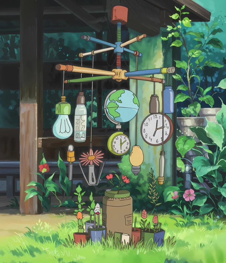 Exploring textures, herbs, wind chimes, bird songs, and edible plants (mint, lemon balm)